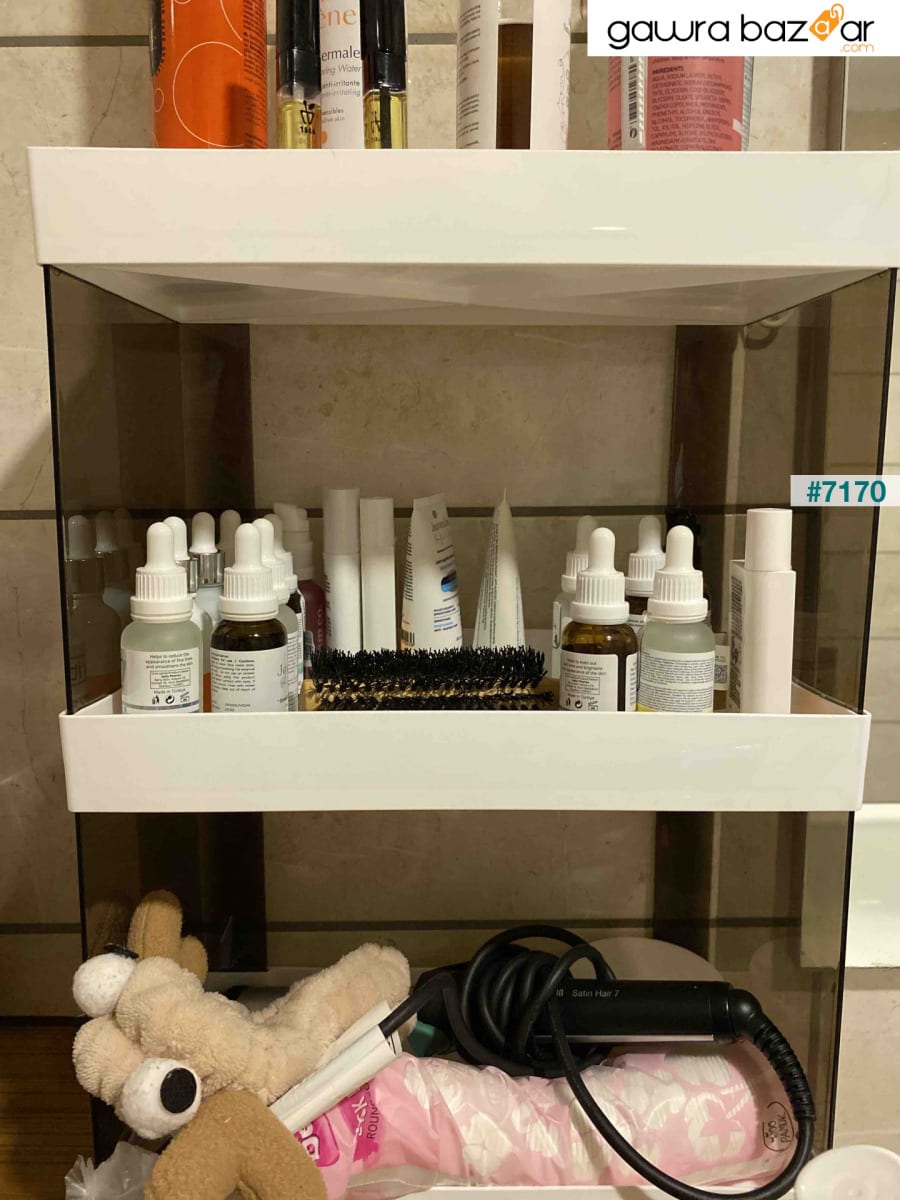 يمكنك تخزين مواد المكياج ومنتجات العناية بانتظام.