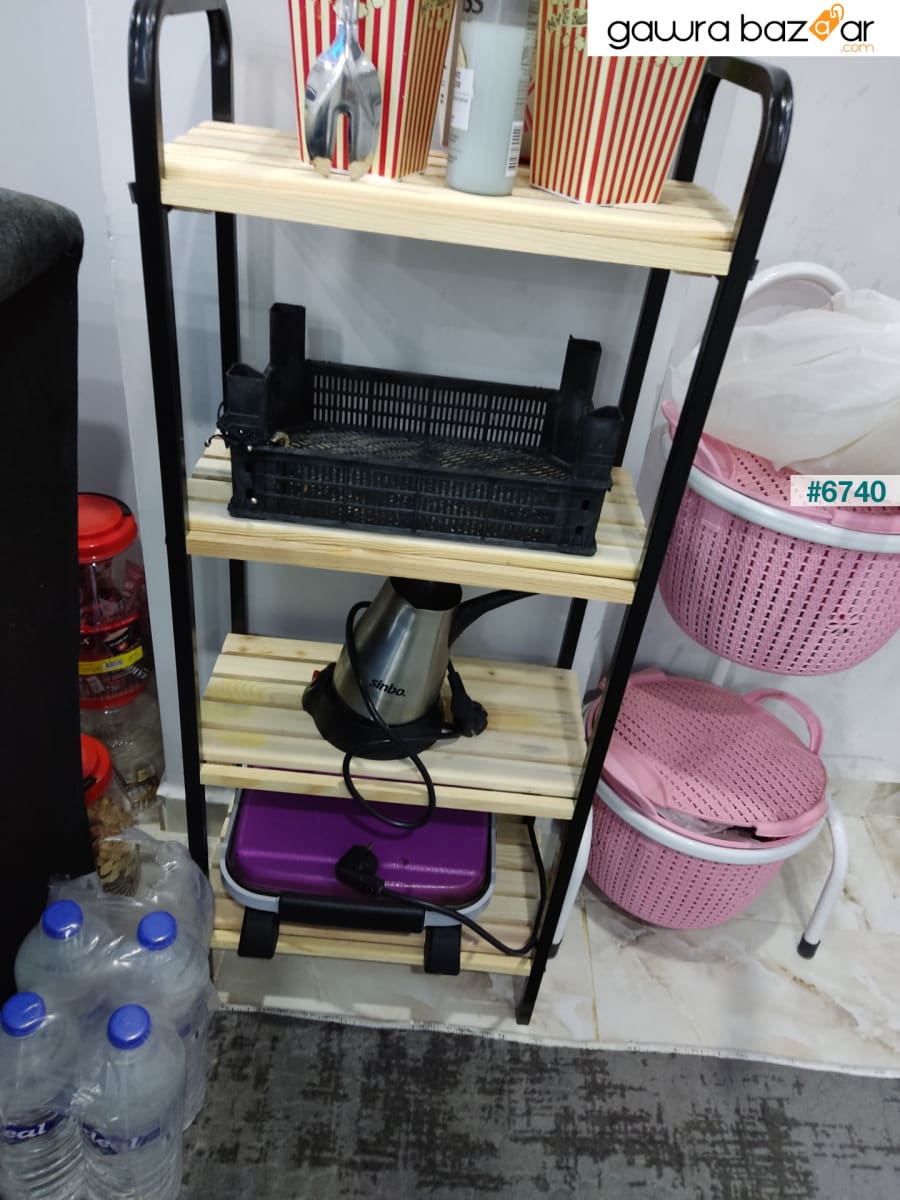 رف خزانة حمام للمطبخ أرفف منظم متعددة الأغراض رف أحذية معدني مع رف خشبي 4 طبقات Bino 2