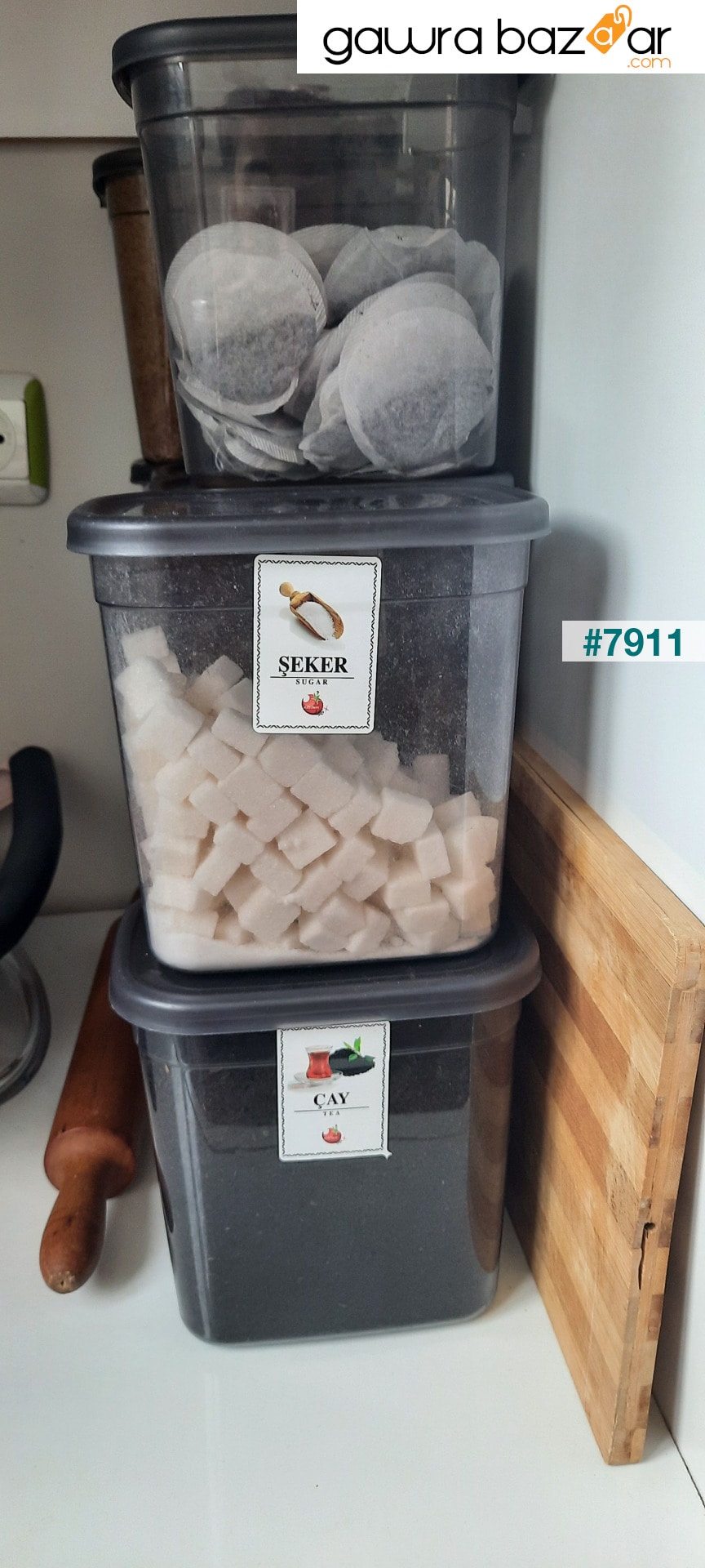 محتويات العبوة: 6 عبوات سعة 2 لتر و 25 قطعة قابلة للغسل و ملصقات للتوابل