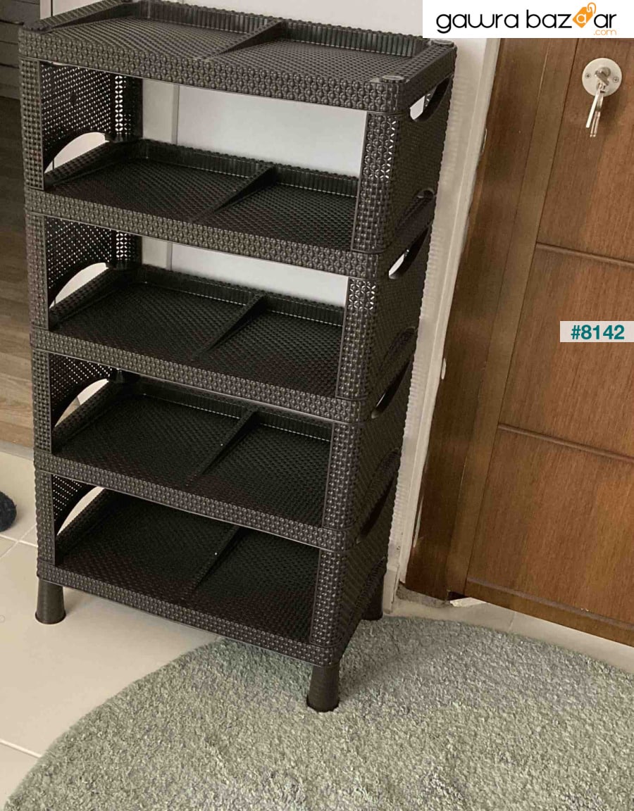 محتوى المنتج: رف أحذية بلاستيك 5 أرفف ، قطعة واحدة أبعاد المنتج: العرض: 54 سم العمق: 31 سم الارتفاع: 100 سم ميزات المنتج: يتميز بسهولة الفك والتركيب.