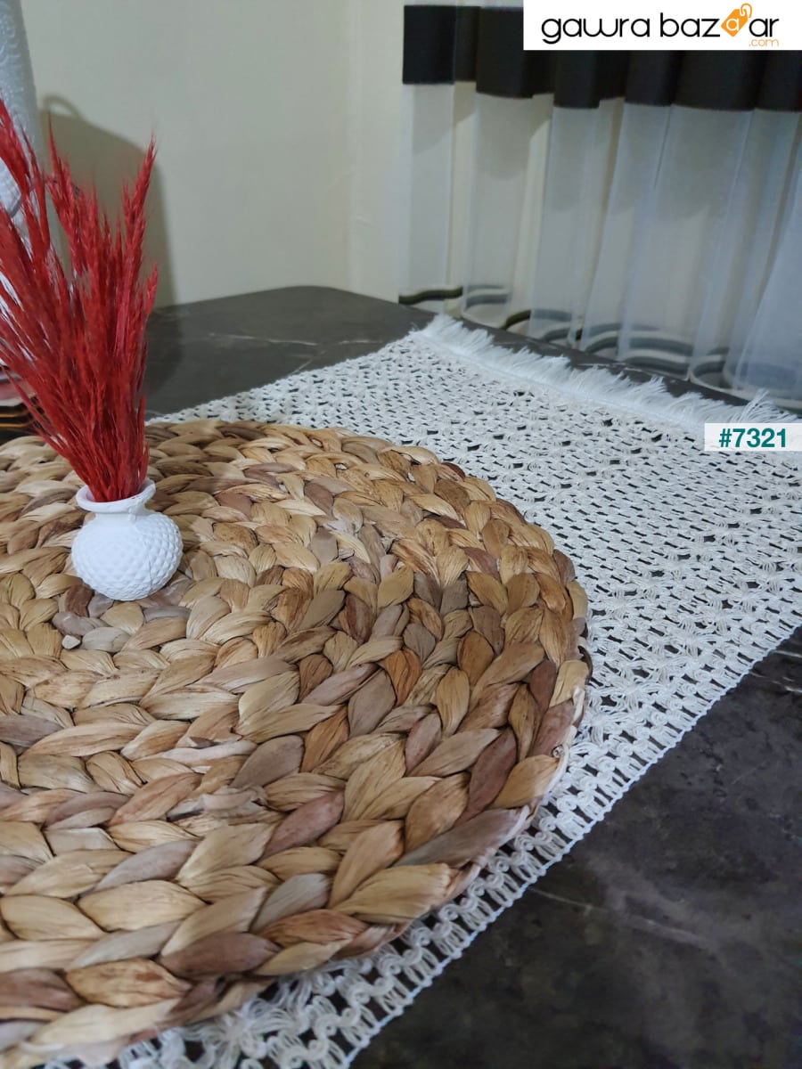مفرش طاولة Vivamaison Runner مفرش مائدة من القطن الخام المحبوك من الدانتيل مزين بشراشيب كريمي 37x150 سم عداء من الدانتيل القطني لتزيين طاولتك وإضفاء الجمال.
