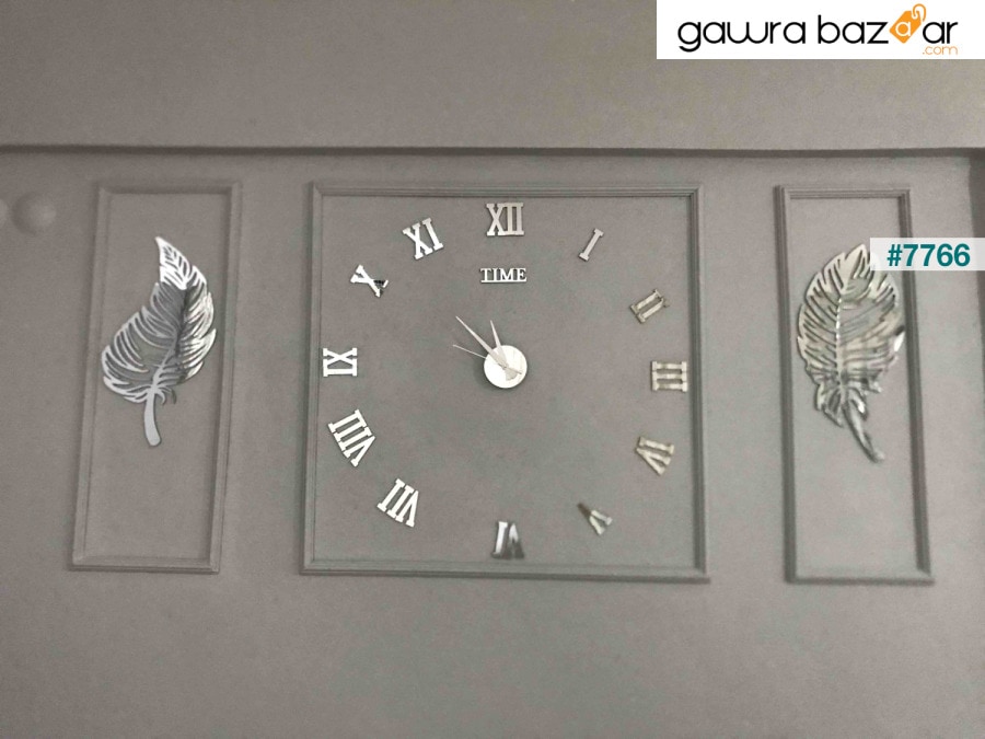 TIME COLLECTION 3D ROMAN CLOCK و 2 LEAF ميزات المنتج: 1 طول الرقم: 7 سم. الحروف: ارتفاع 7 سم وسماكة 4 مم. يتم إنتاجه بتقنية القطع بالليزر. الساعة: عقرب الساعات: الطول 10 سم ، عقرب الدقائق 13 سم ، طول الثانية 14 سم. آلية الساعة هادئة بما يكفي لعدم إزعاج الصوت. يعمل ببطارية واحدة. (لم يتم إرسال البطارية.) إنها منتجات تكمل بعضها البعض كمجموعة. · وصف التجميع: يوجد قالب في الحزمة بحيث يمكنك تجميع الساعة بشكل صحيح. يمكنك لصقها بسهولة على مساحة تتراوح بين 50 سم و 100 سم باستخدام الاستنسل. يضاف الشريط على الوجهين إلى العبوة بحيث يمكنك لصق الأرقام والمجموعة الست. قبل لصق ساعتك على الحائط ، تأكد من أن الجزء الخلفي من الأرقام والمنطقة التي ستلصقها ليست مغبرة. المناطق المتربة ستمنع المادة اللاصقة من الالتصاق. · يجب أن تتم عملية تنظيف المنتج بقطعة قماش مبللة قليلاً. · ملحوظة: السطح الأمامي للأرقام مطلي بالجيلاتين لمنع الخدش. يمكنك إزالة الجيلاتين الأخير والحصول على صورة معكوسة.